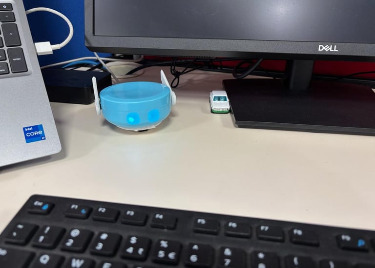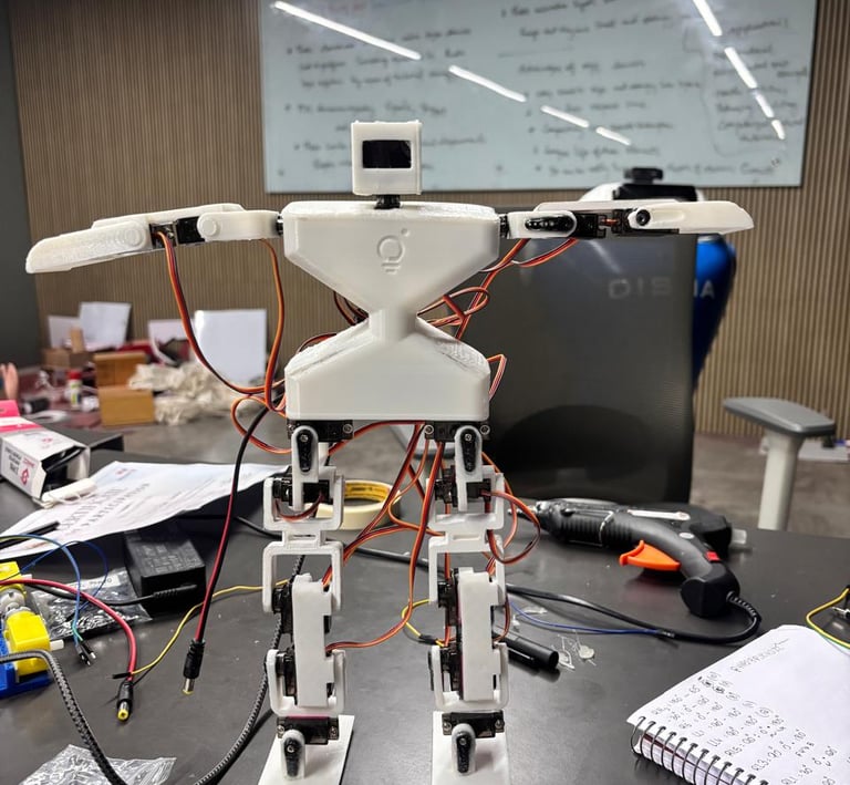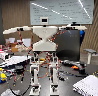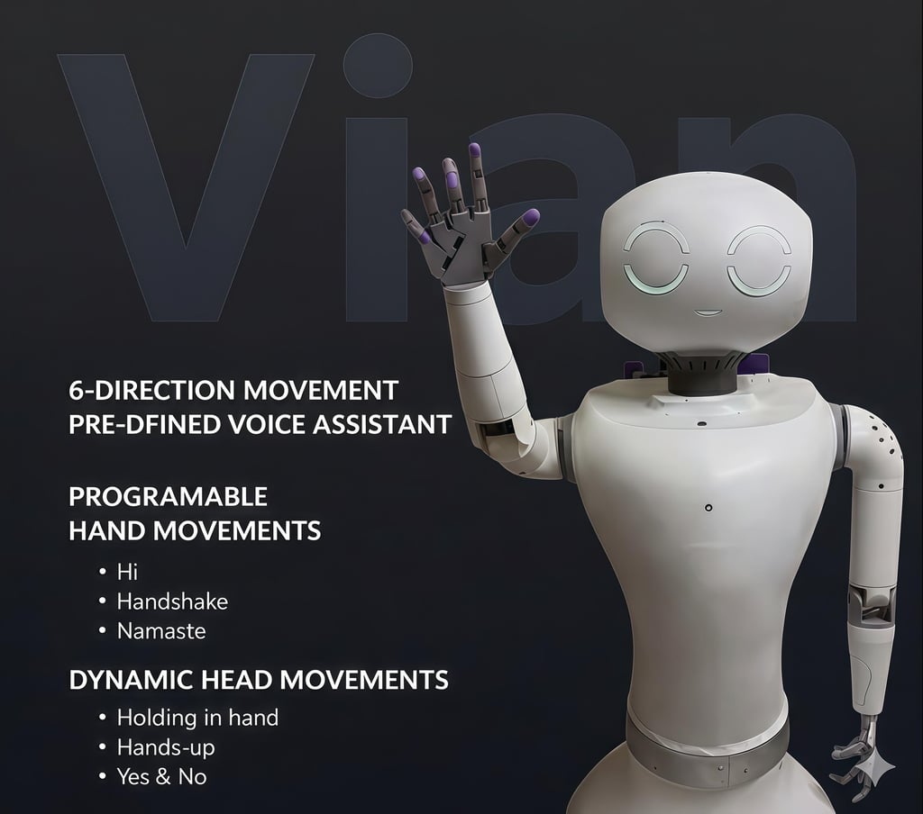 A semi-humanoid robot that helps to assist in places where interactions feel more joyful.